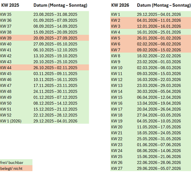 Schreiben Sie uns einfach kurz an, wann sie El Casa KaMa genießen möchten. Hier sehen Sie unsere aktuellen Buchungskalender.